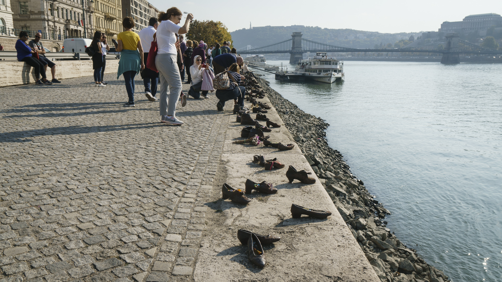 Schuhe als Mahnmal für die hier von den Pfeilkreuzlern 1944 ermordeten Juden.