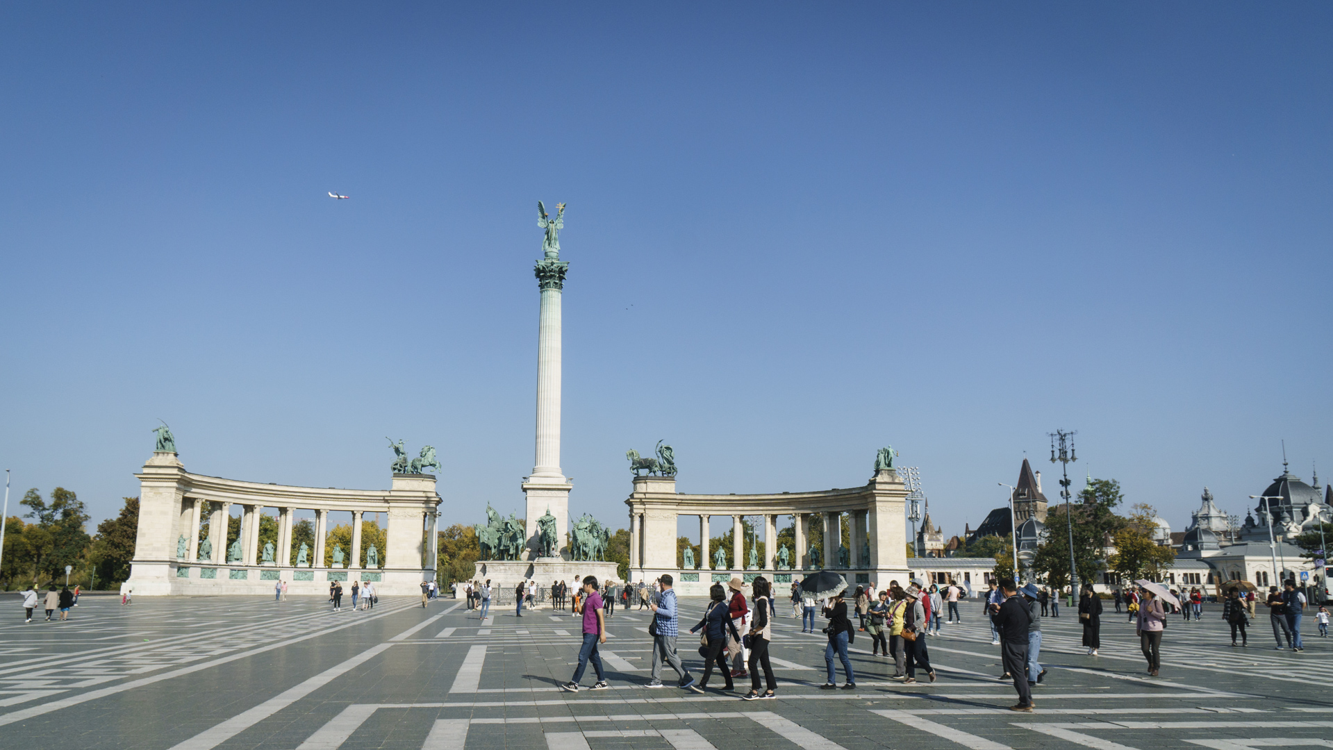 Der Heldenplatz. Touristen nicht nur am Boden sondern auch in der Luft.